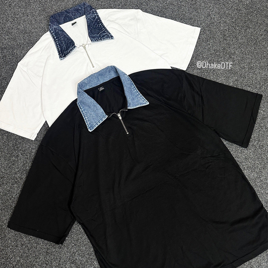 Denim Collar Drop Polo T-Shirt